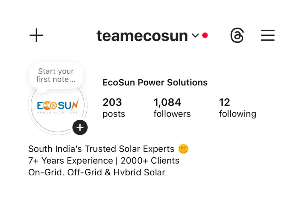 South India’s trusted solar experts grew their Instagram presence with structured content, niche reels, and consistent posting strategy.